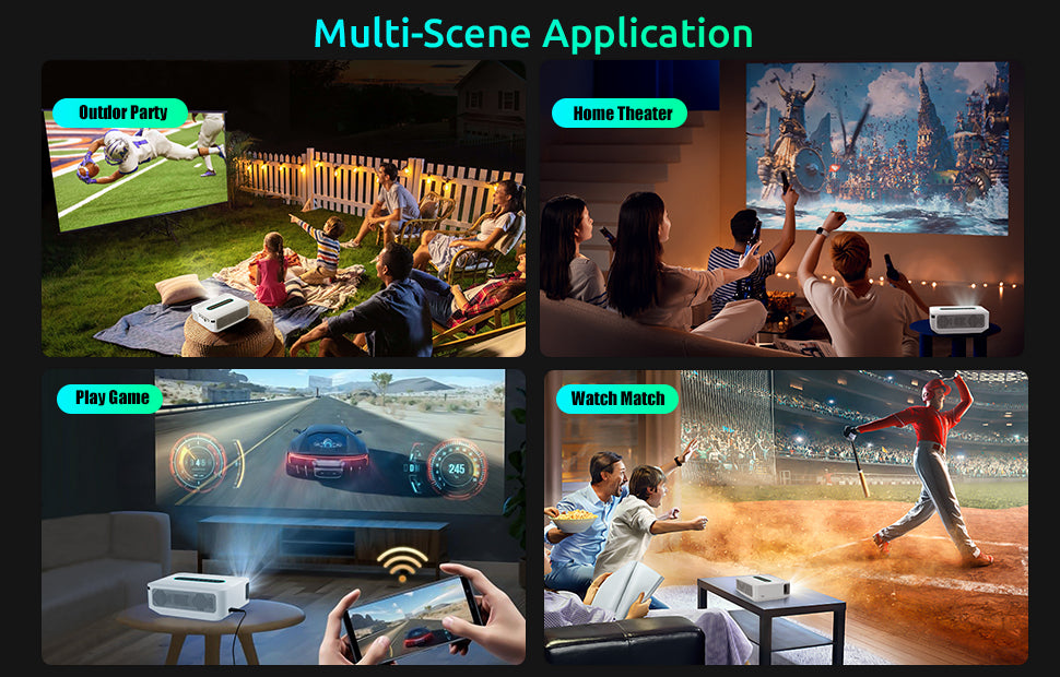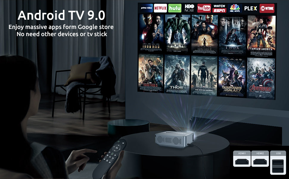 X1 Home Theater Projector's innovatively built-in Android TV feature brings more entertainment to family and friends at festivals and family gatherings. Stream over 700,000 movies and shows, live sports and news, or your favorite music from apps like Netflix, Spotify, YouTube, Google Photos, and Drive.