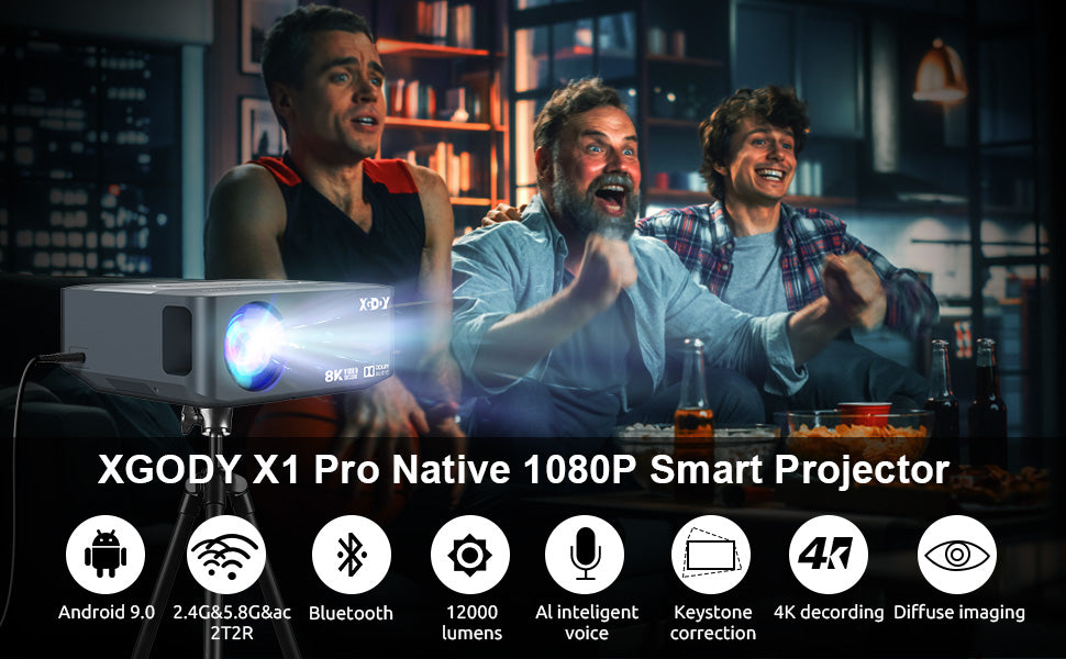 XGODY X1 | Native 1080P Projector 4K With Android 9.0 TV & Dolby Sound, For Wireless Outdoor Movies Night