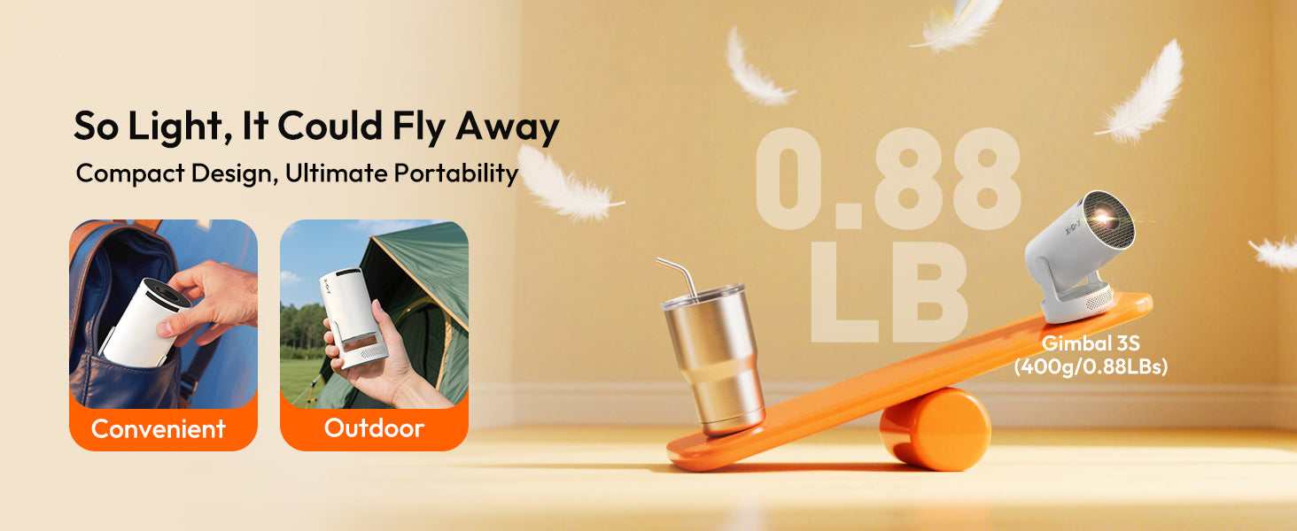 XGODY Gimbal 3S Portable Short-throw Projector, Android 11.0 system With Bluetooth And Dual-band WiFi6