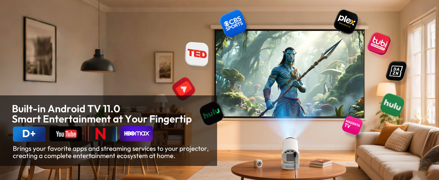 Android 11.0 system, Bluetooth 5.4, 12000 Lumen, supports multiple interfaces