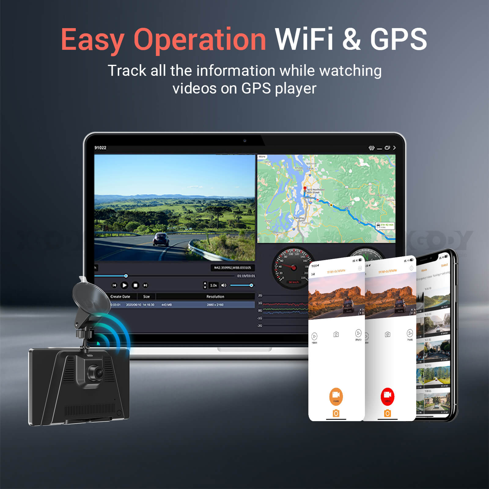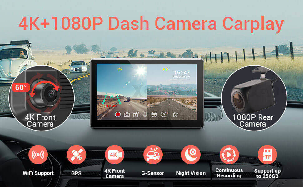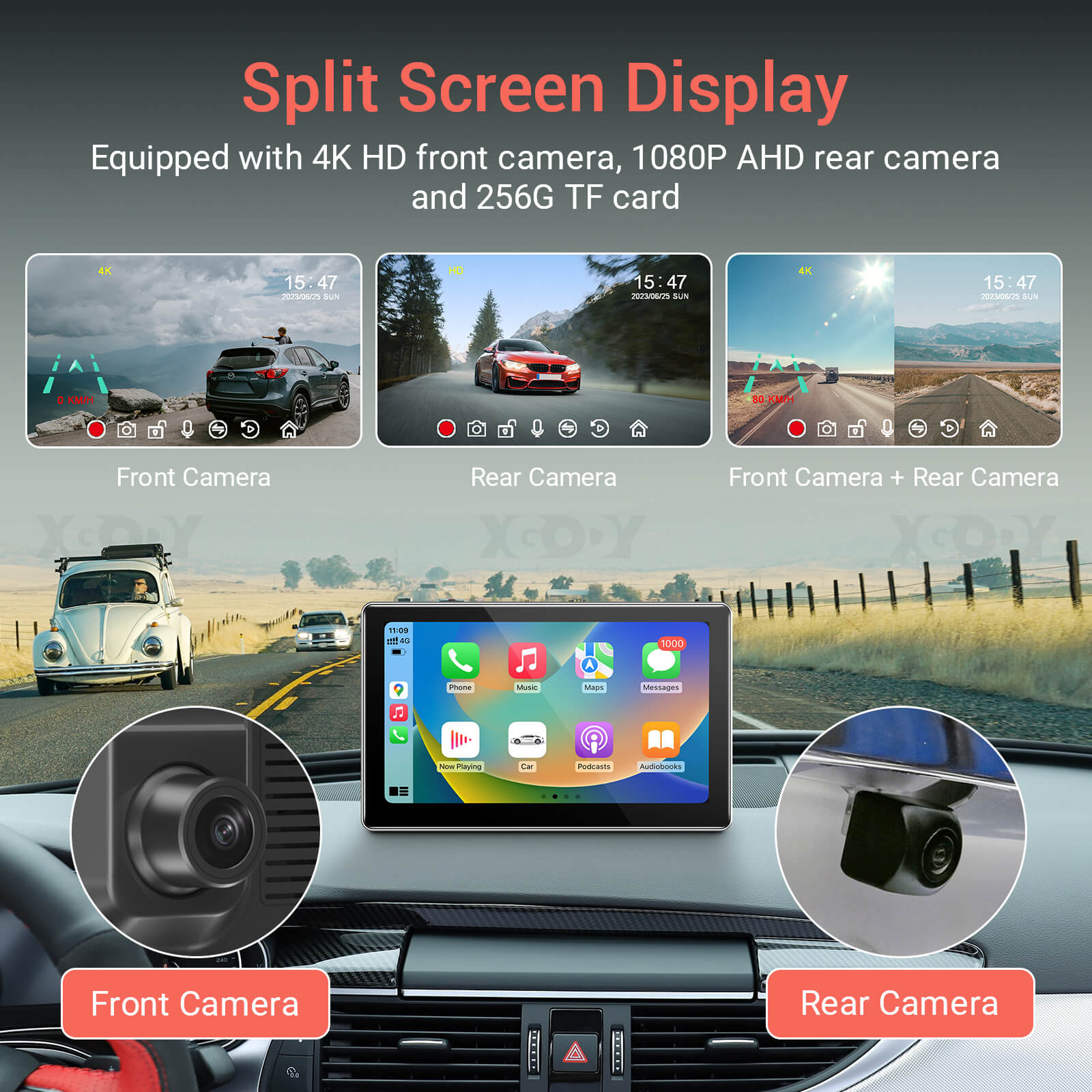 XGODY Q26 Dash Cam | 7" Screen, 4K+1080P Cameras, Carplay/Android Auto, GPS Tracking