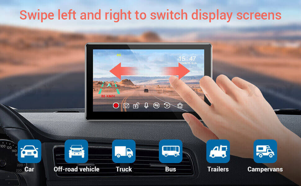 1. Compact Display: A 7-inch screen offers a clear and convenient view of your driving surroundings.