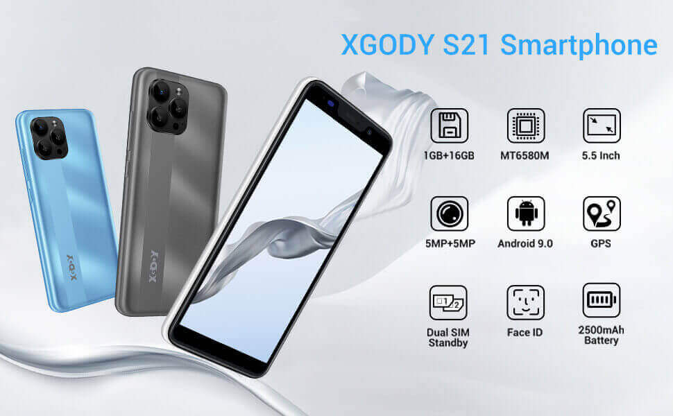 XGODY S21 | 5.5" HD Screen, Android 9.0, Small & Sleek Design, Face Unlock