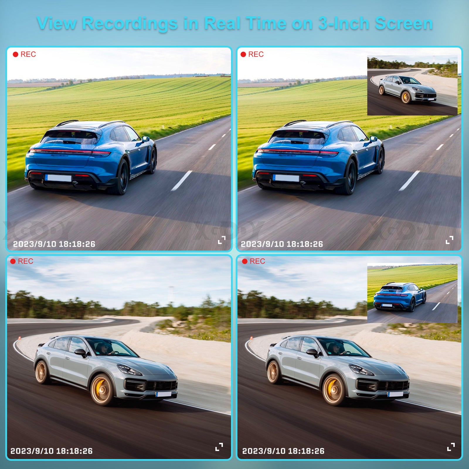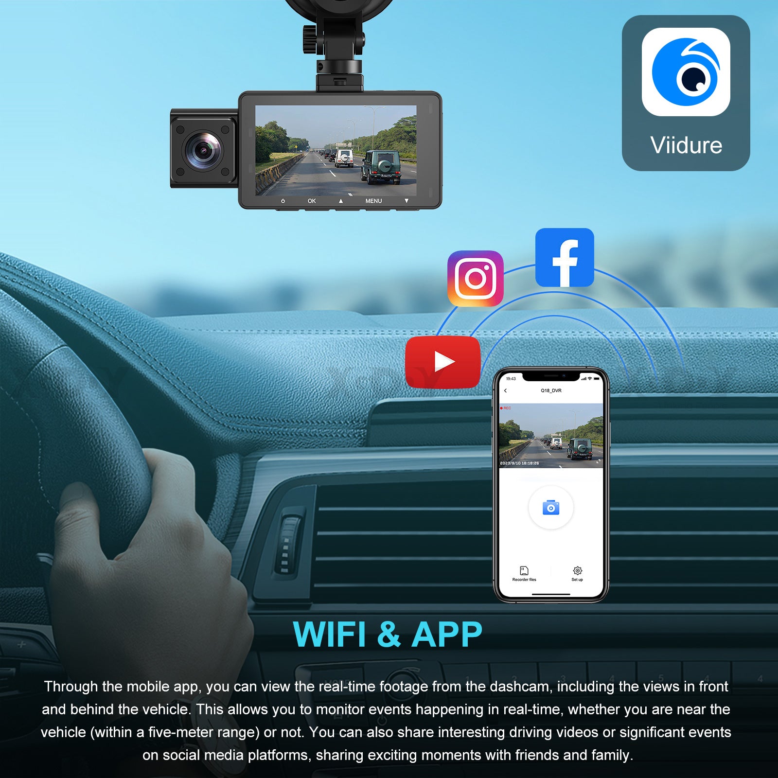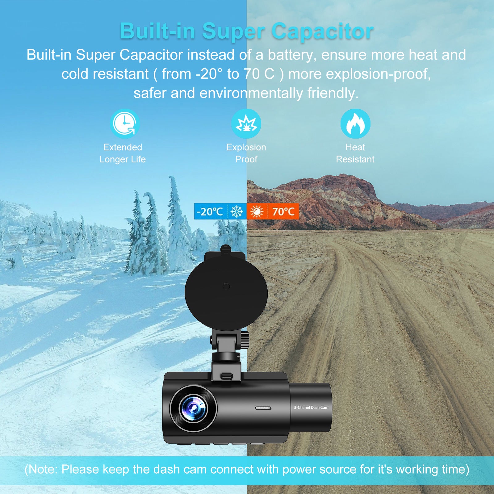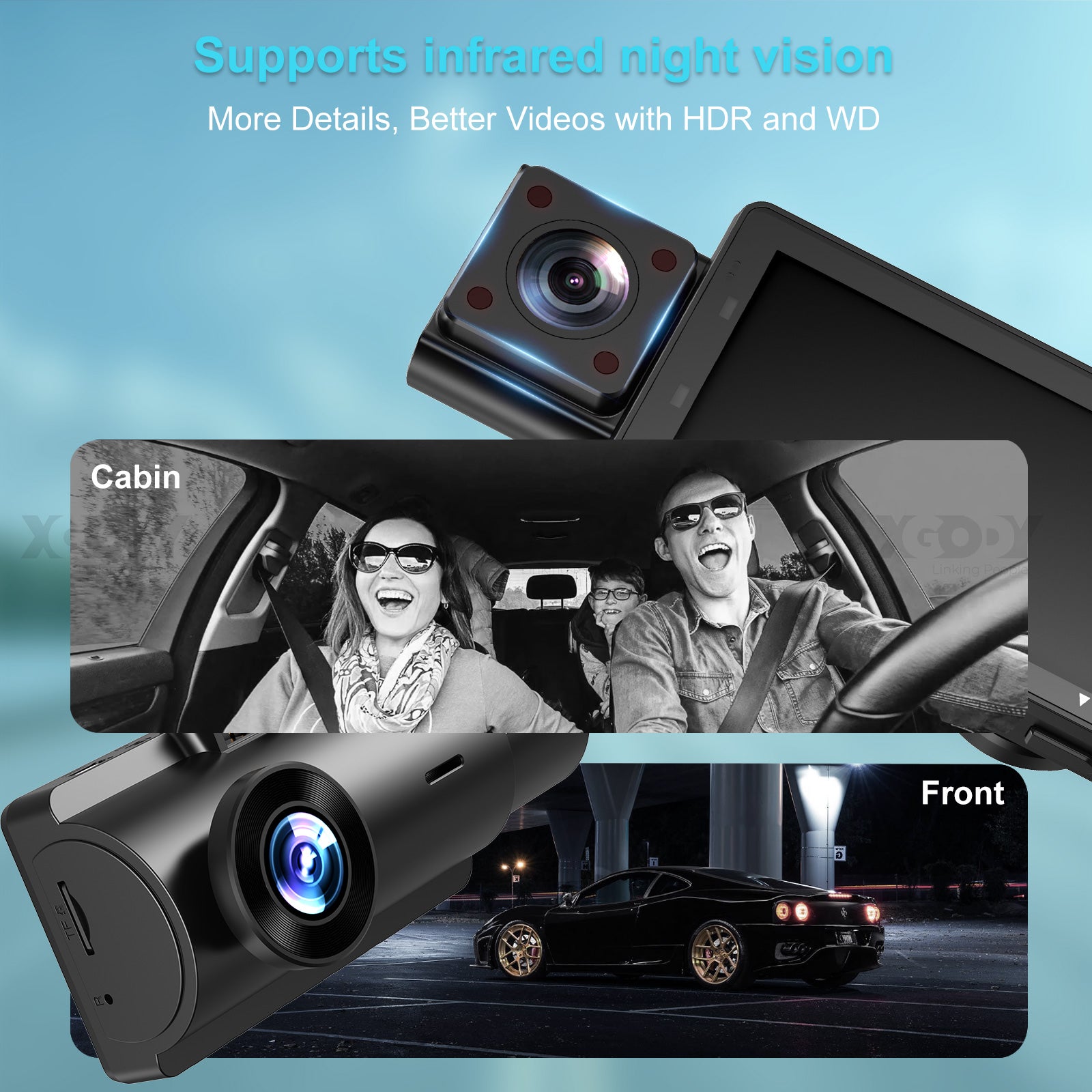 XGODY Q18 Triple | Lens Dash Cam | 2K Front + Dual 1080P Rear, 24-Hour Monitoring, Night Vision