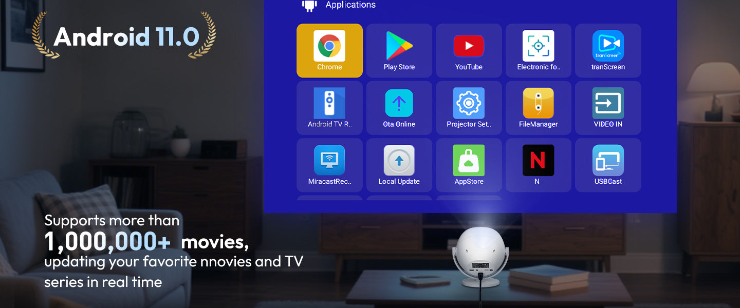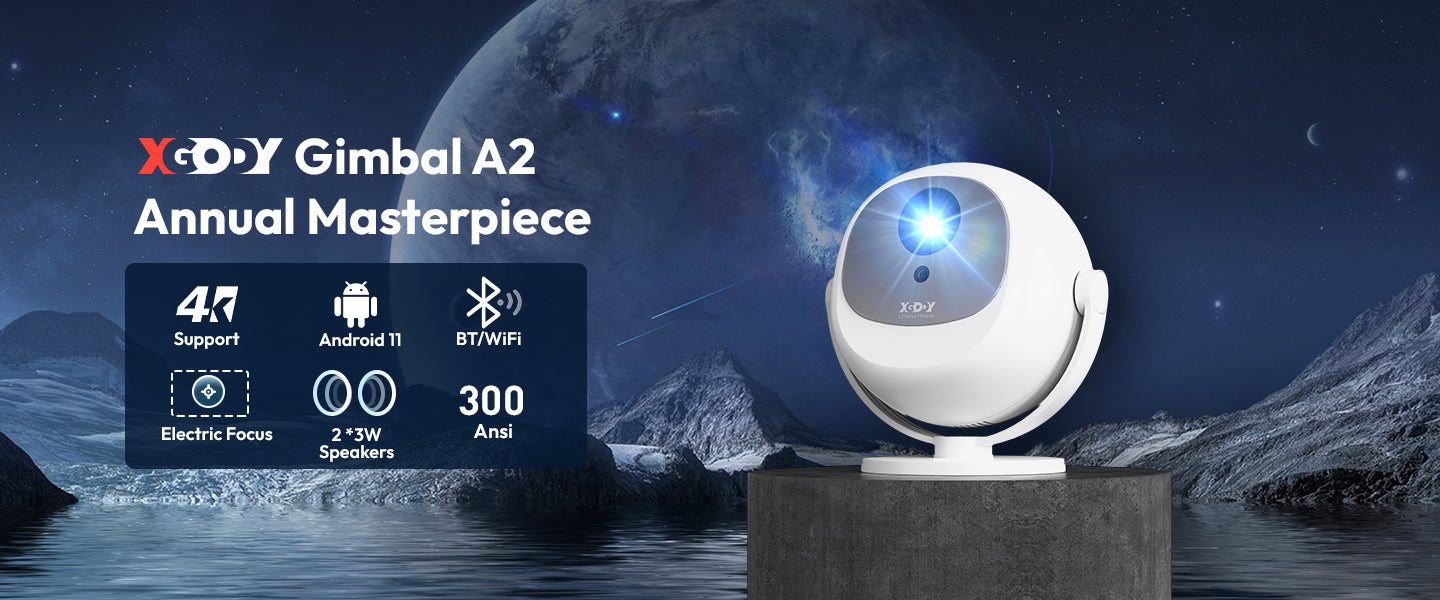 Gimbal A2: Portable Projector Dual Speakers Android 11.0, Native720P, WiFi6 & Bluetooth5.2 Connectivity
