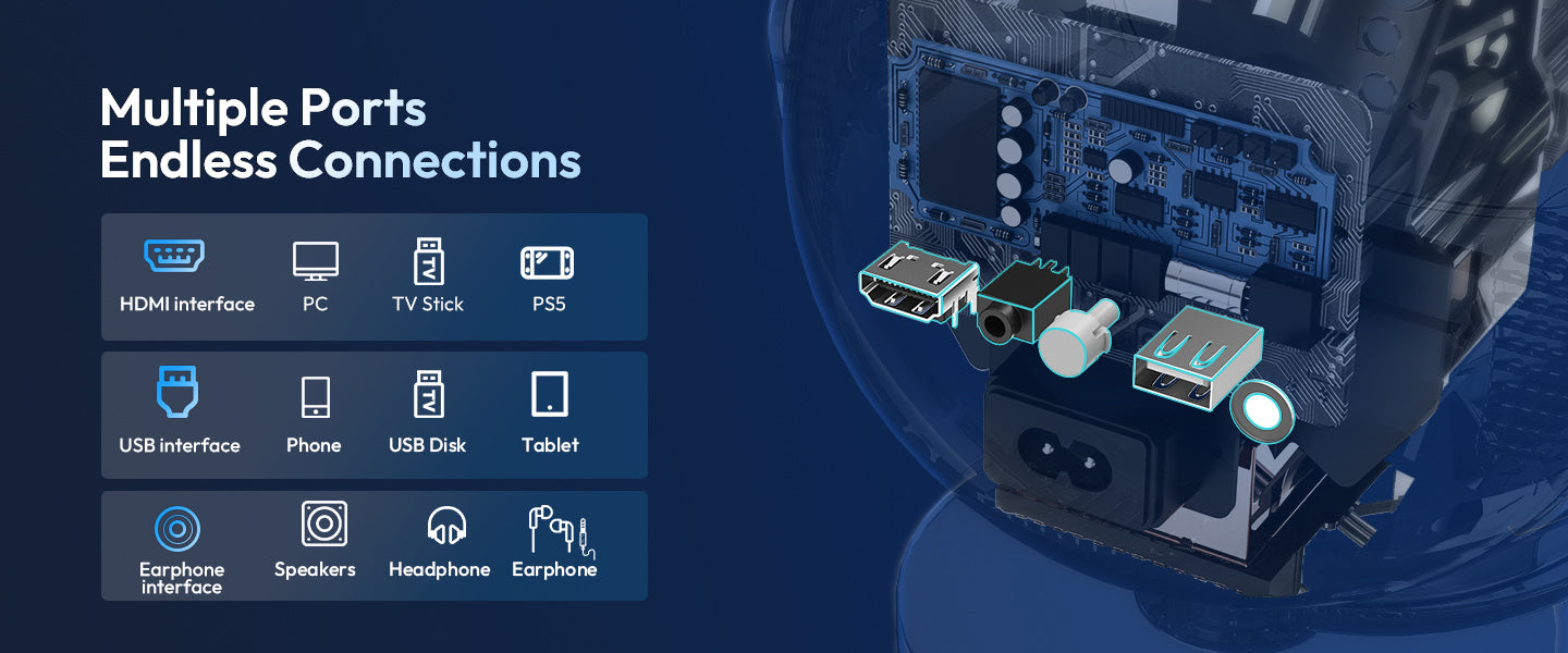HDMI, USB, WiFi 6/5G Wi-Fi, Bluetooth 5.2