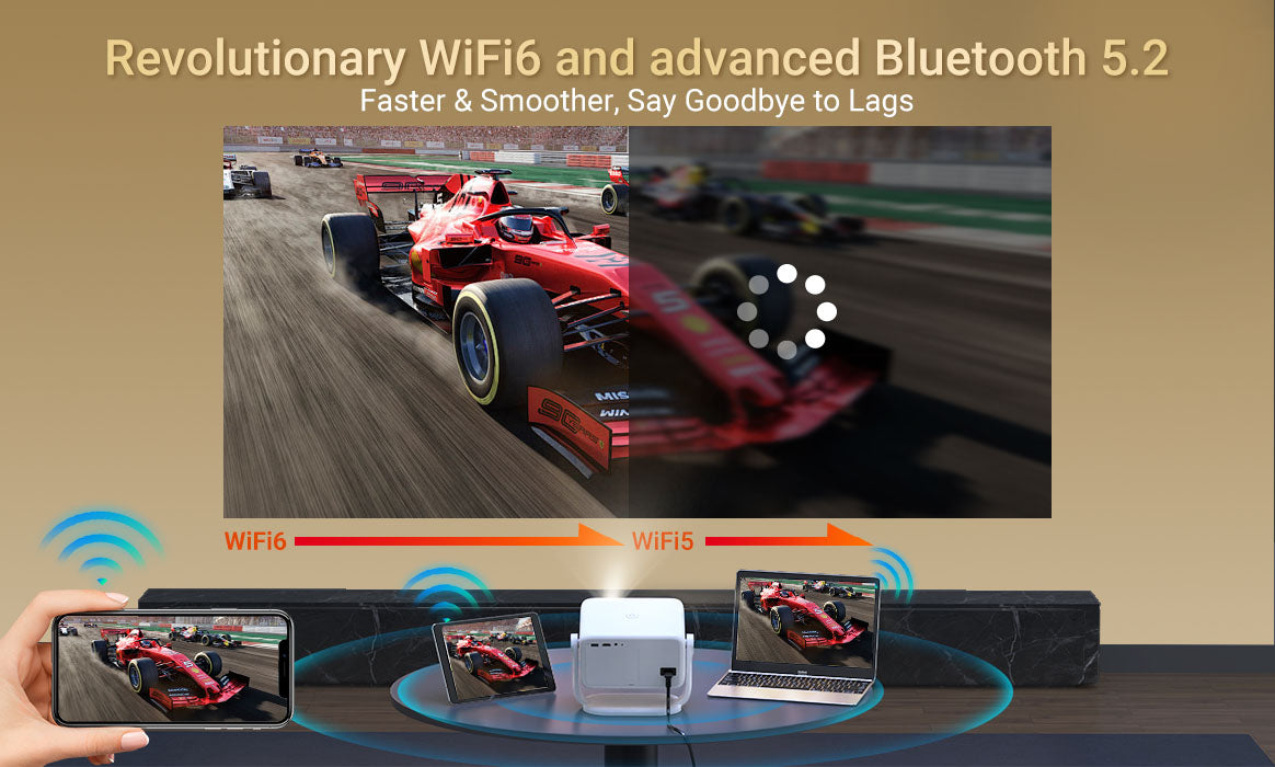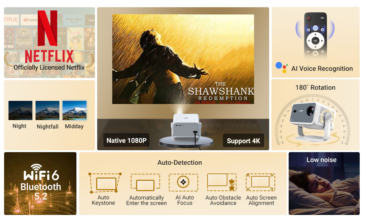 Gimbal N6 Portable Projector With Native 1080P, WiFi 6 & Bluetooth 5.2 For Home Theater