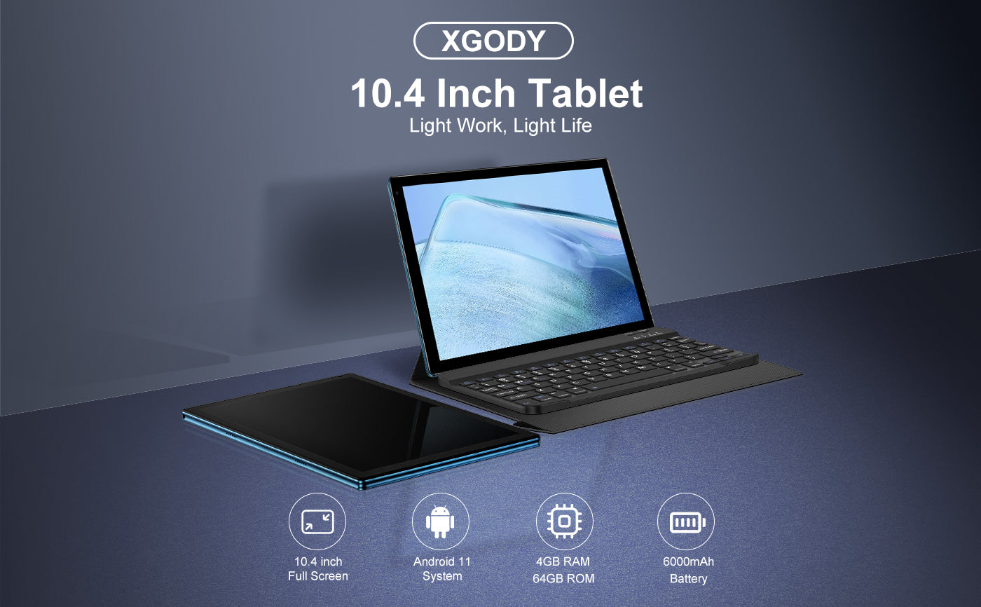 XGODY 10.4 Inch Android Tablet, Freebies-Leather Cases & Keyboards, Light Work, Light Life