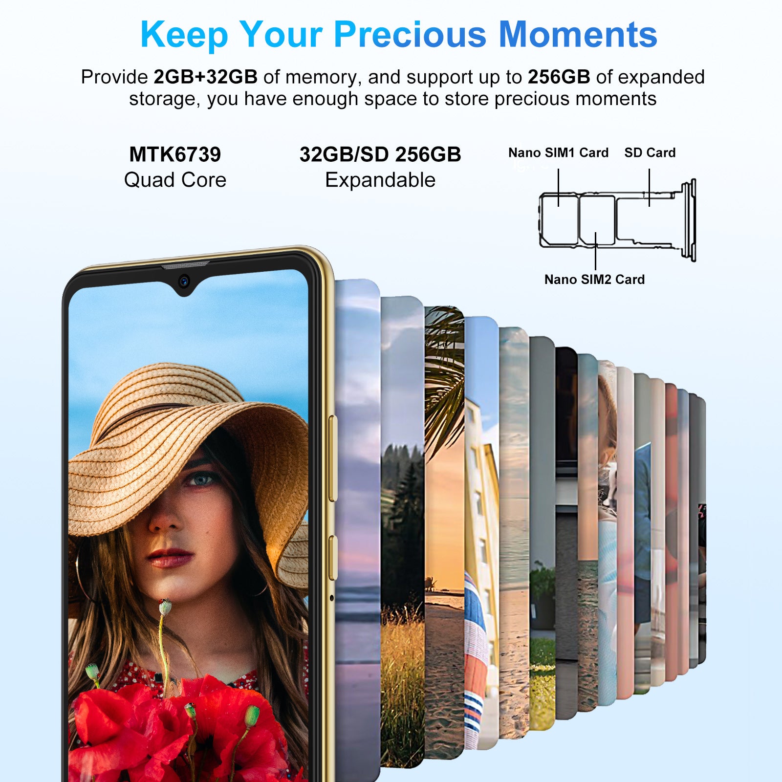 2. Capture Memories: Capture moments with a 5MP+8MP dual-camera setup for clear and vibrant photos.