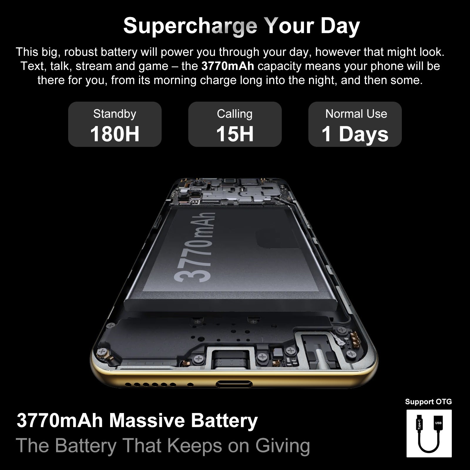 7. Long-lasting Power: Tackle your day confidently with a 4000mAh battery.