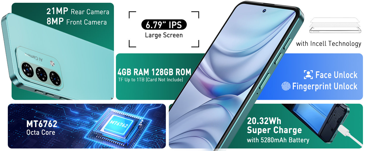 XGODY Mate60 6.79" Large Screen 4G LTE Smartphone, Supports Sace Unlocking, Built-in 4+128G Memory