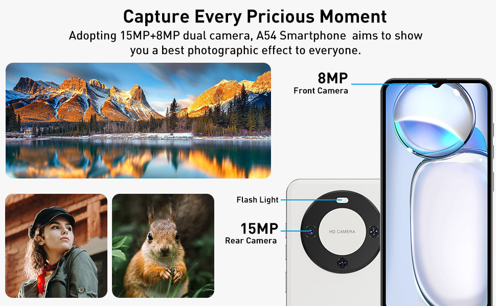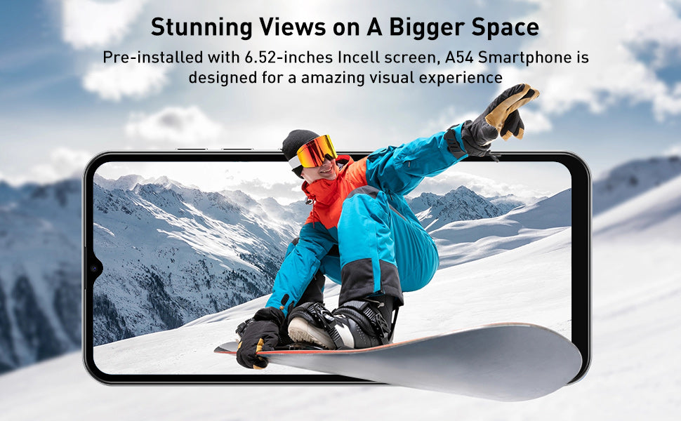 1* A54 Phone,1* Phone Case,1* USB Cable,1* HD Film,1* Protective Film,1* Eject Pin,1* User Manual,1* After-sales card