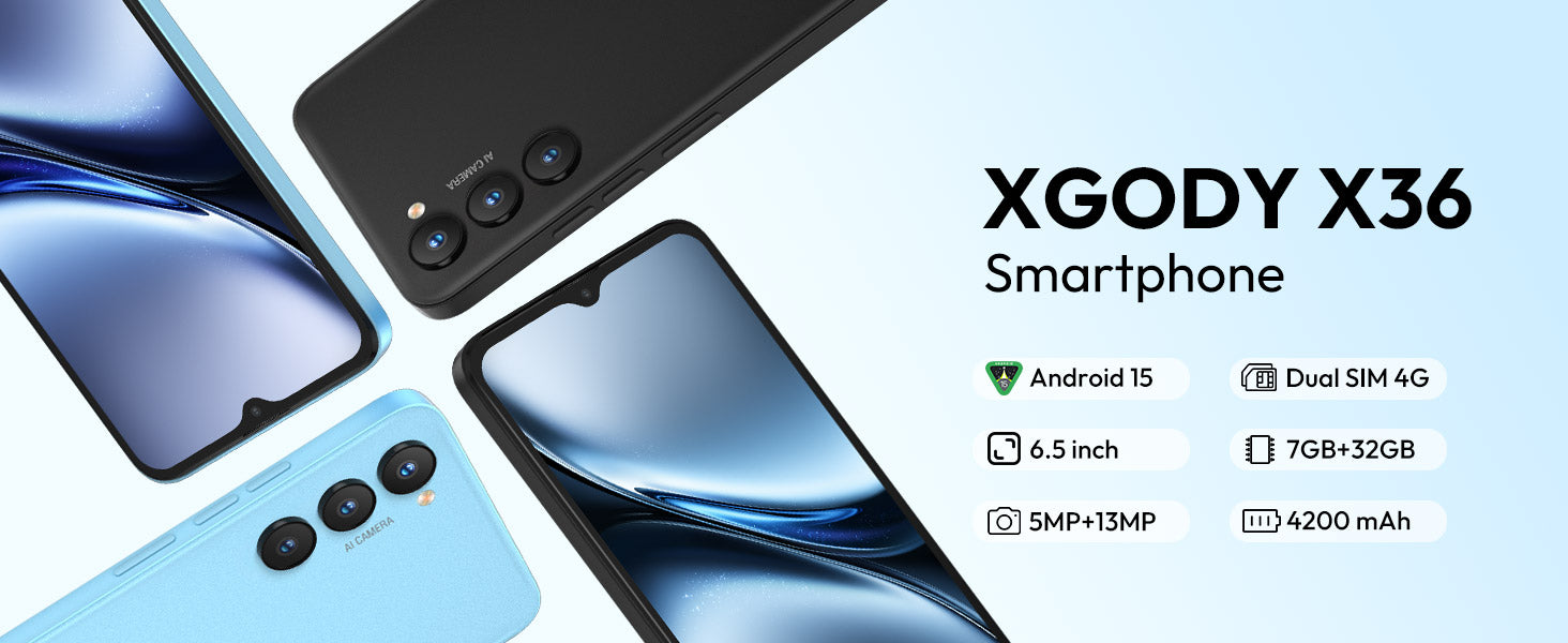 1* XGODY X36, 1* Charger, 1* Tempered Film&HD Film, 1 * Protective Case, 1* Type-C Cable, 1* Phone Manual