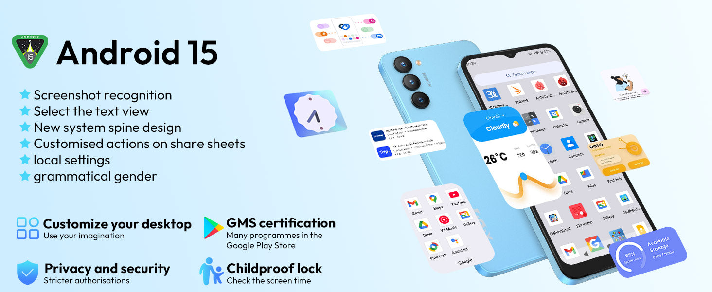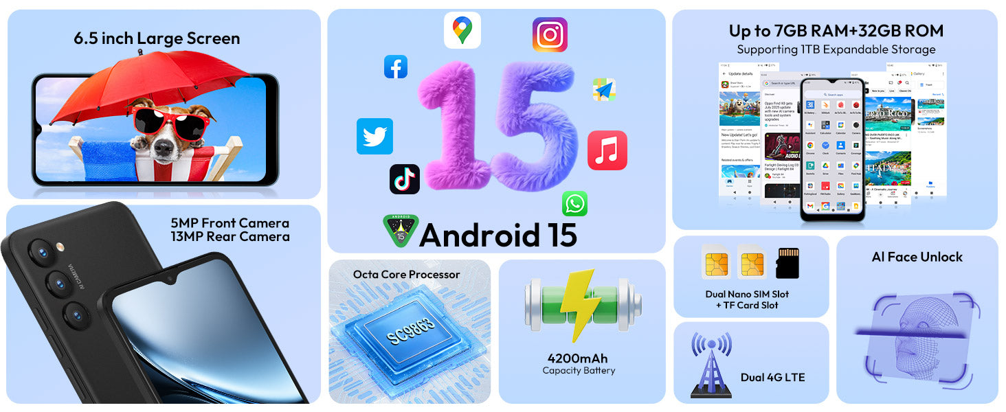 X36 6.5" Android 15 Unlocked 4G Android Phone | 4200mAh, Built-in Face Recognition, Dual SIM