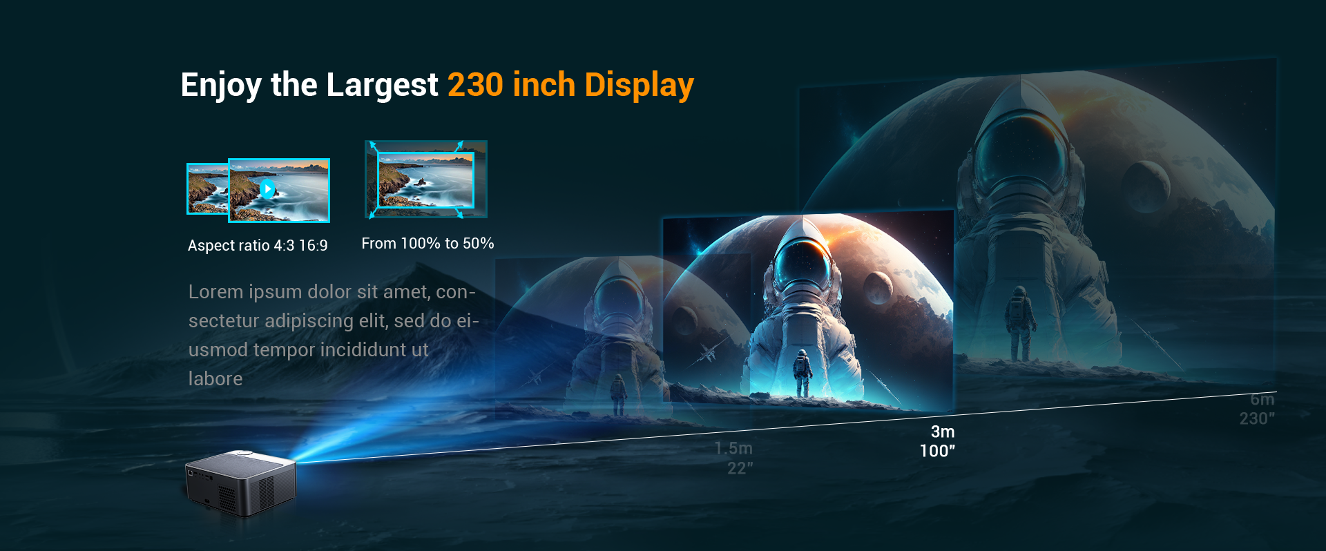 8. Adjustable Projection Size: Create an immersive experience with a customizable projection size from 40 to 230 inches.