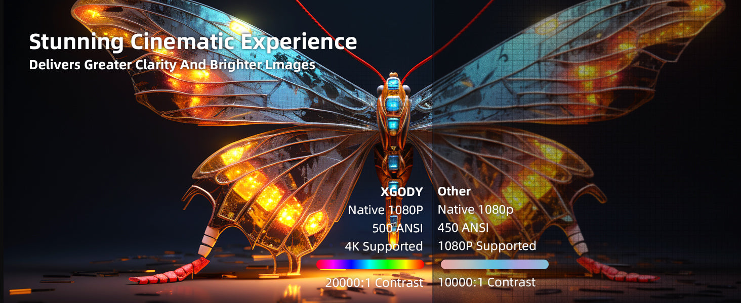Make every moment a cinematic experience and bring happiness home with the XGODY Native 1080p Wireless Smart Projector. It's more than a projector; it's a gateway to a world of entertainment possibilities. Discover the perfect blend of quality, convenience, and innovation for your home theater today.