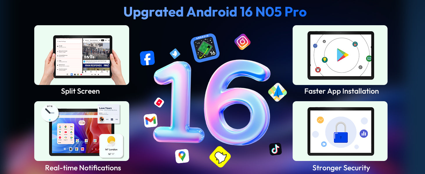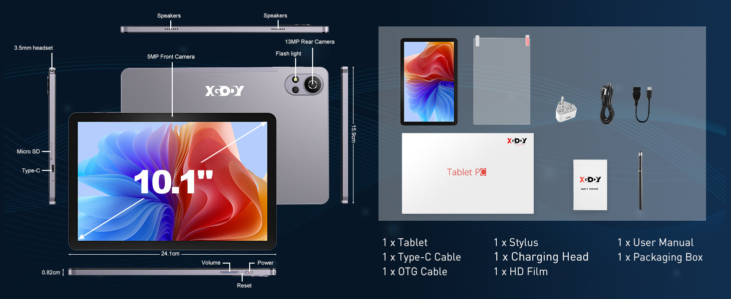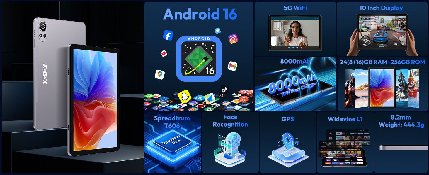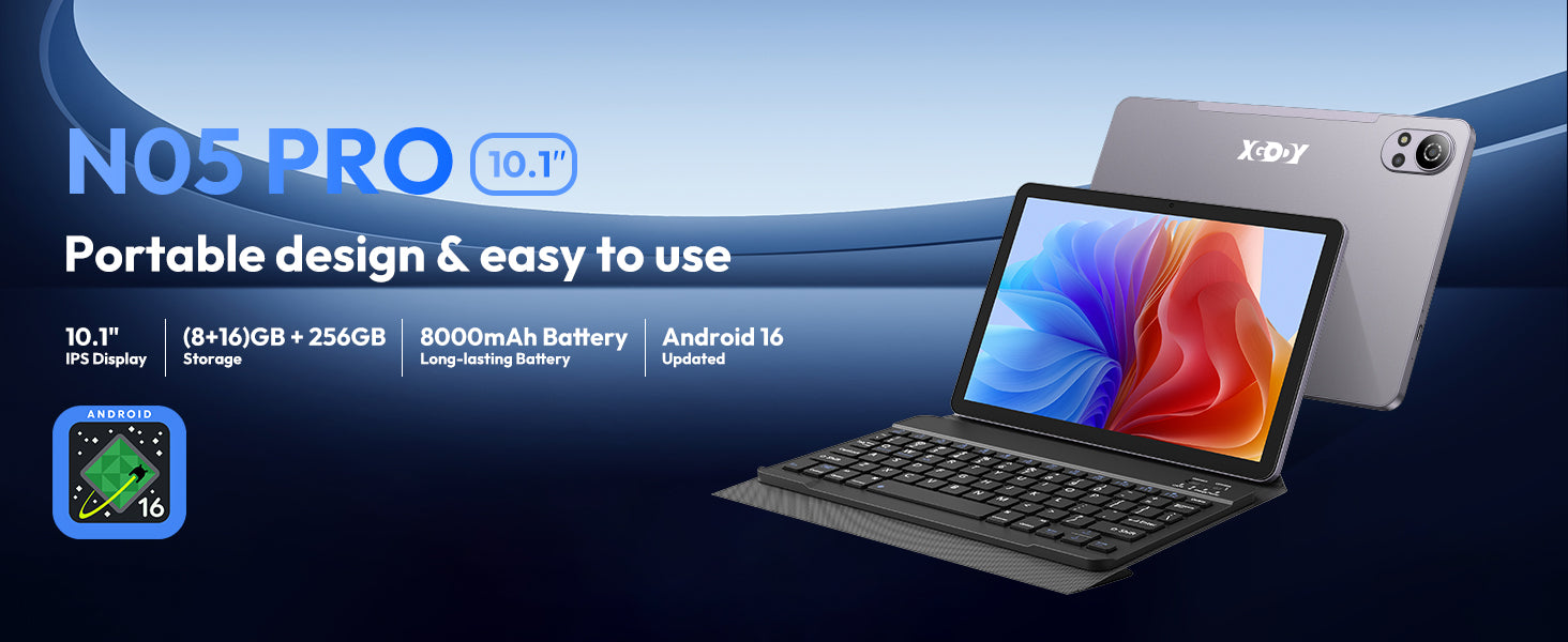 XGODY N05 Pro Android 16 Tablet 10.1" 24GB RAM 256GB ROM 2SIM 8000mAh Widevine L1 2-in-1 Tablet PC – Support 4G LTE