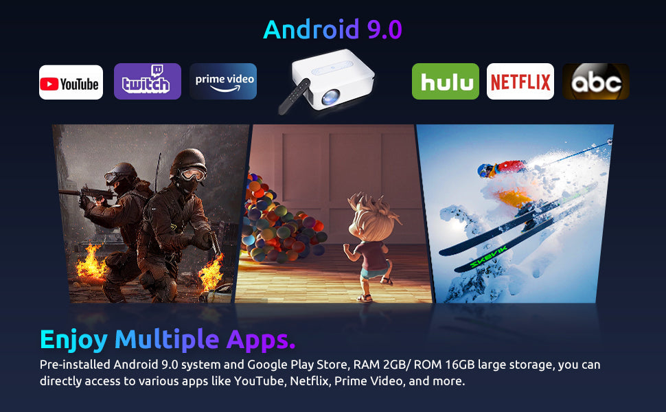 XGODY X1 | Native 1080P Projector 4K With Android 9.0 TV & Dolby Sound, For Wireless Outdoor Movies Night