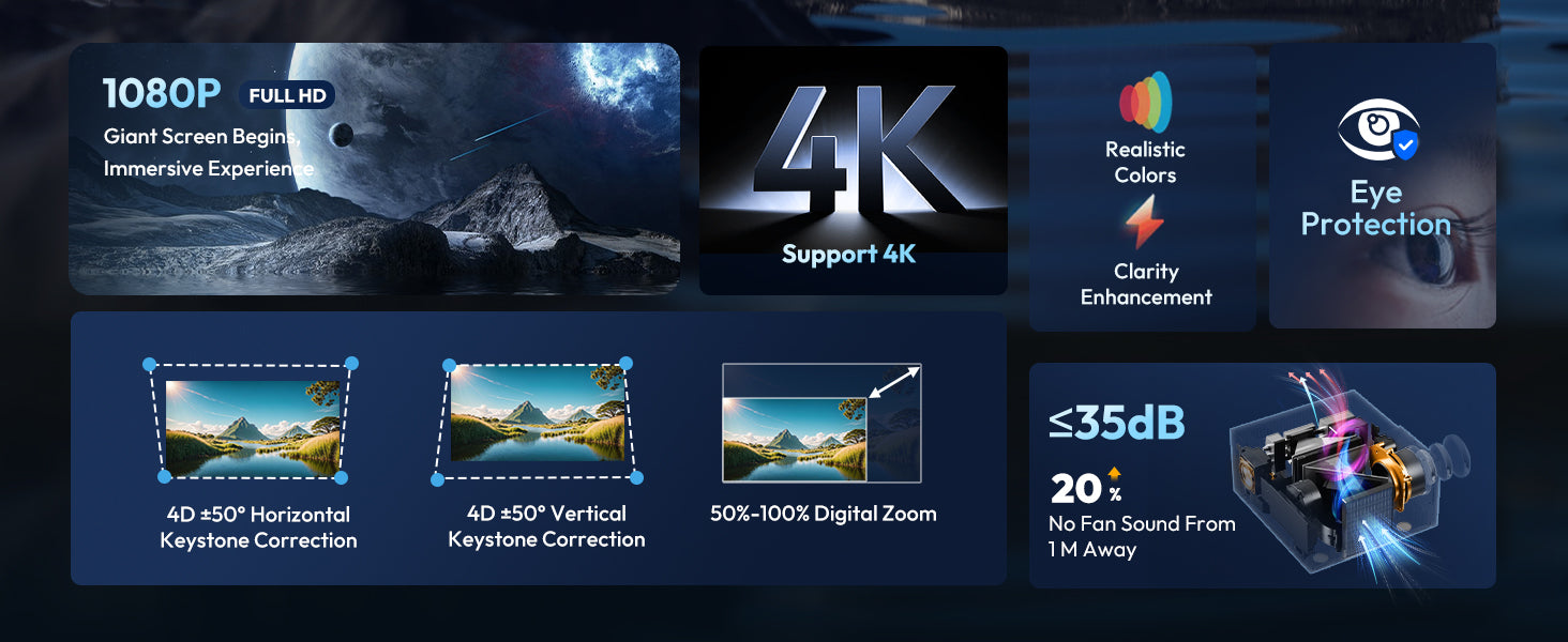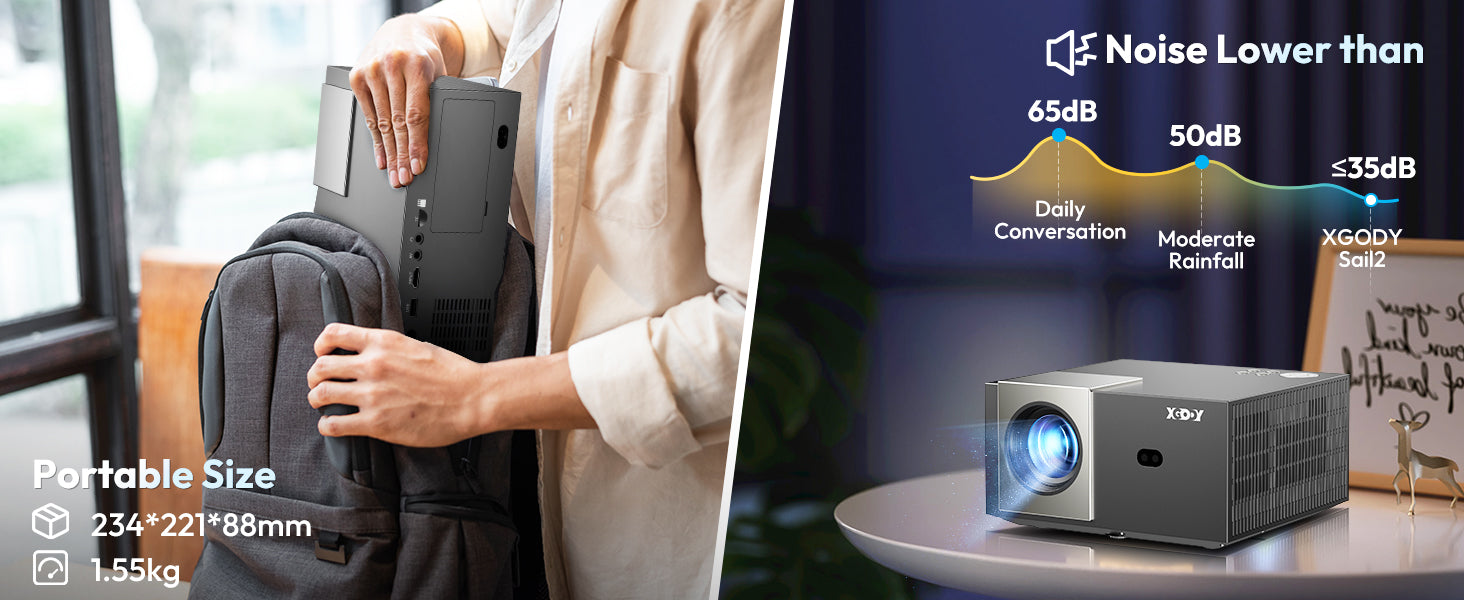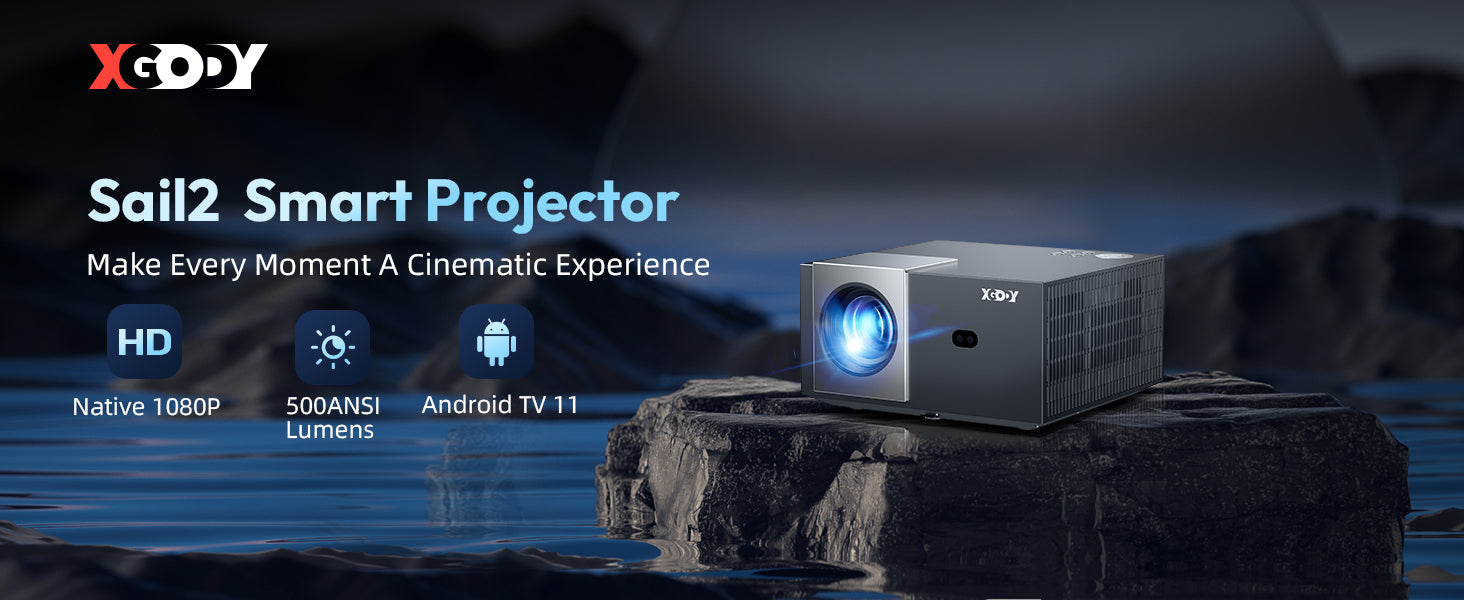 XGODY Sail2 Native 1080p Projector With WiFi And Bluetooth, 200-inch Full HD Large Screen