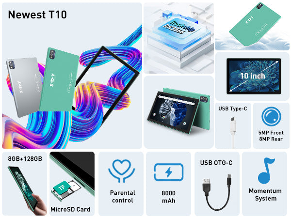 XGODY T10 With Long Battery Life, HD Display, And Dual Cameras, Budget-Friendly 10.1 Inch Tablet