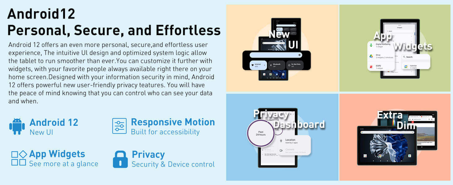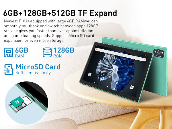 Powered by Android 12, this tablet ensures a seamless and intuitive interface, coupled with enhanced security features. The 6+128GB memory configuration provides ample space for your apps and files, and with the potential to expand up to 512GB, your possibilities are limitless.