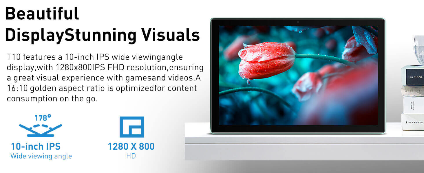 1. Vivid Display: Immerse yourself in a 10.1-inch HD screen with a resolution of 1280*800.