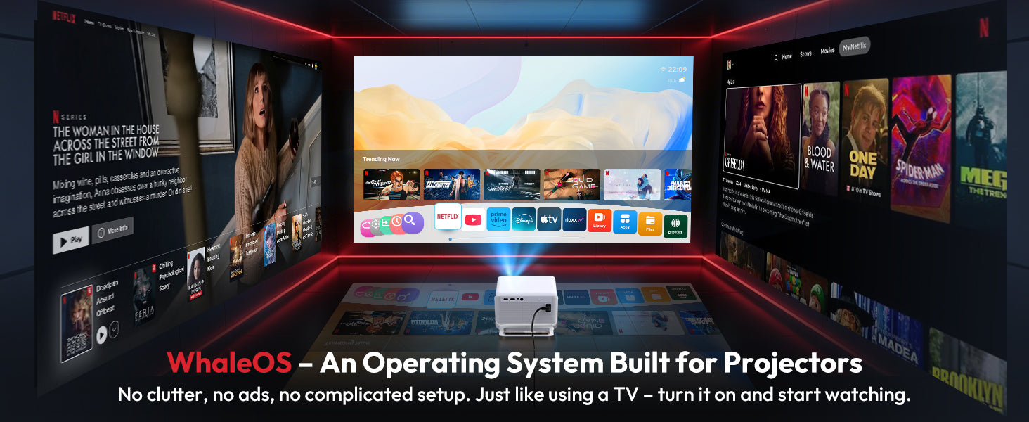 Smart Projector x1, HDMI Cable x1, Power Cable x1, Remote Control x 1(Batteries are not included), Projector User Manual x1