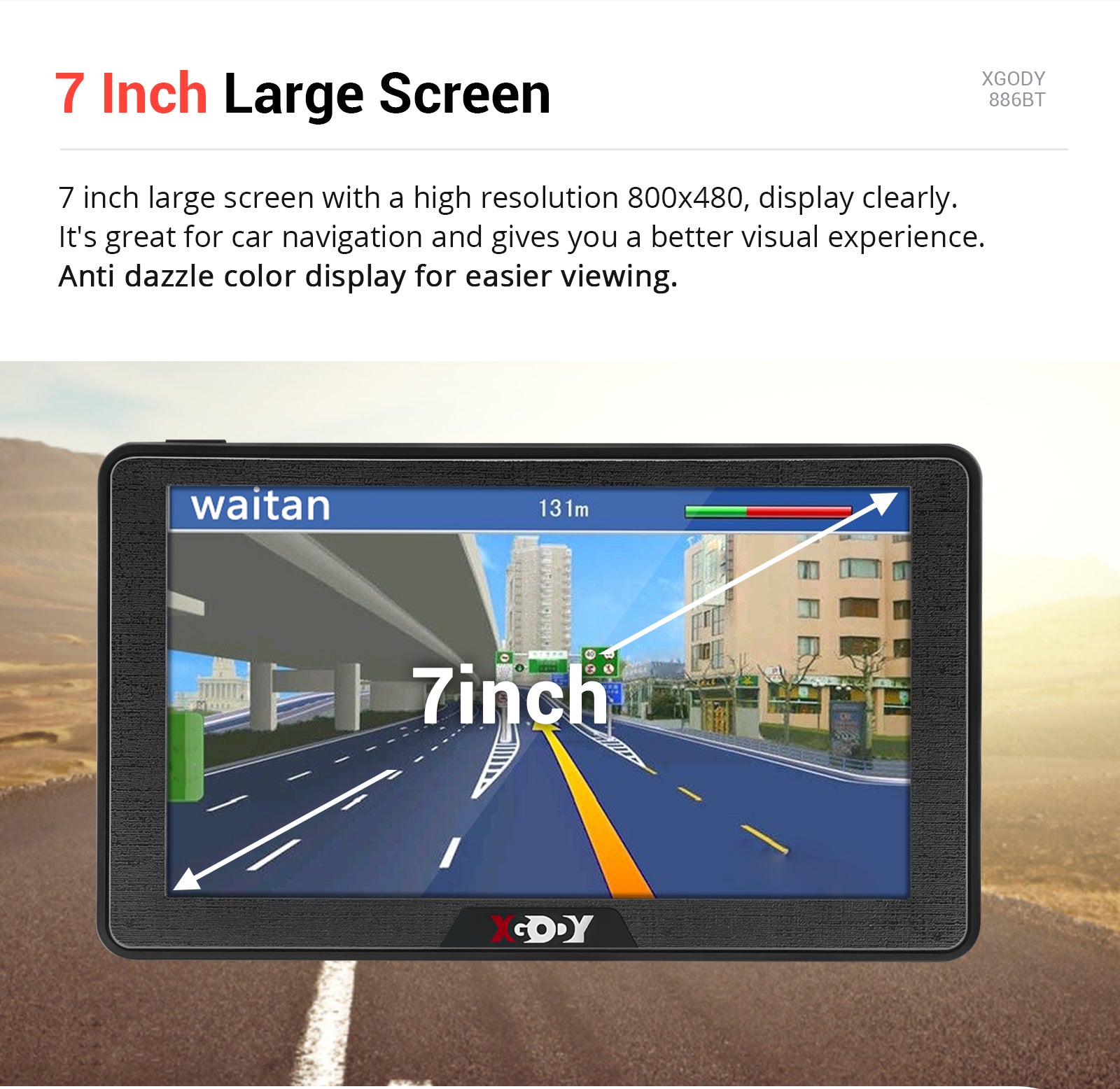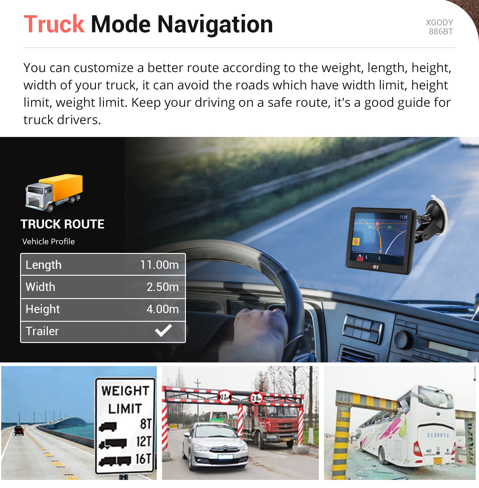 XGODY 886BT | 7-inch GPS Truck Navigator, Easy Raed Touchscreen Display, Custom Routing and Dock Guidance
