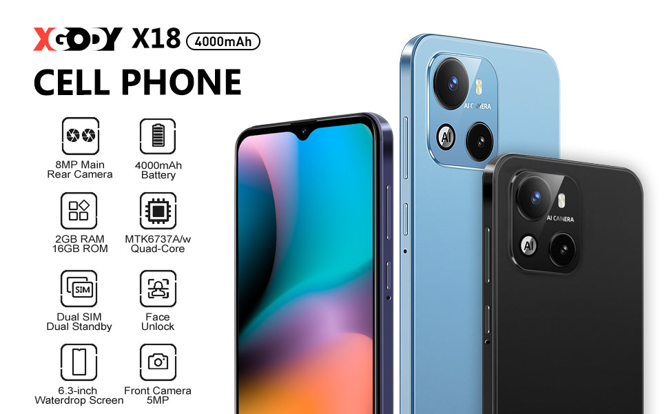 XGODY 6.3" Android Phone with Quad-Core Android 10, Dual 4G LTE - X18 Smart